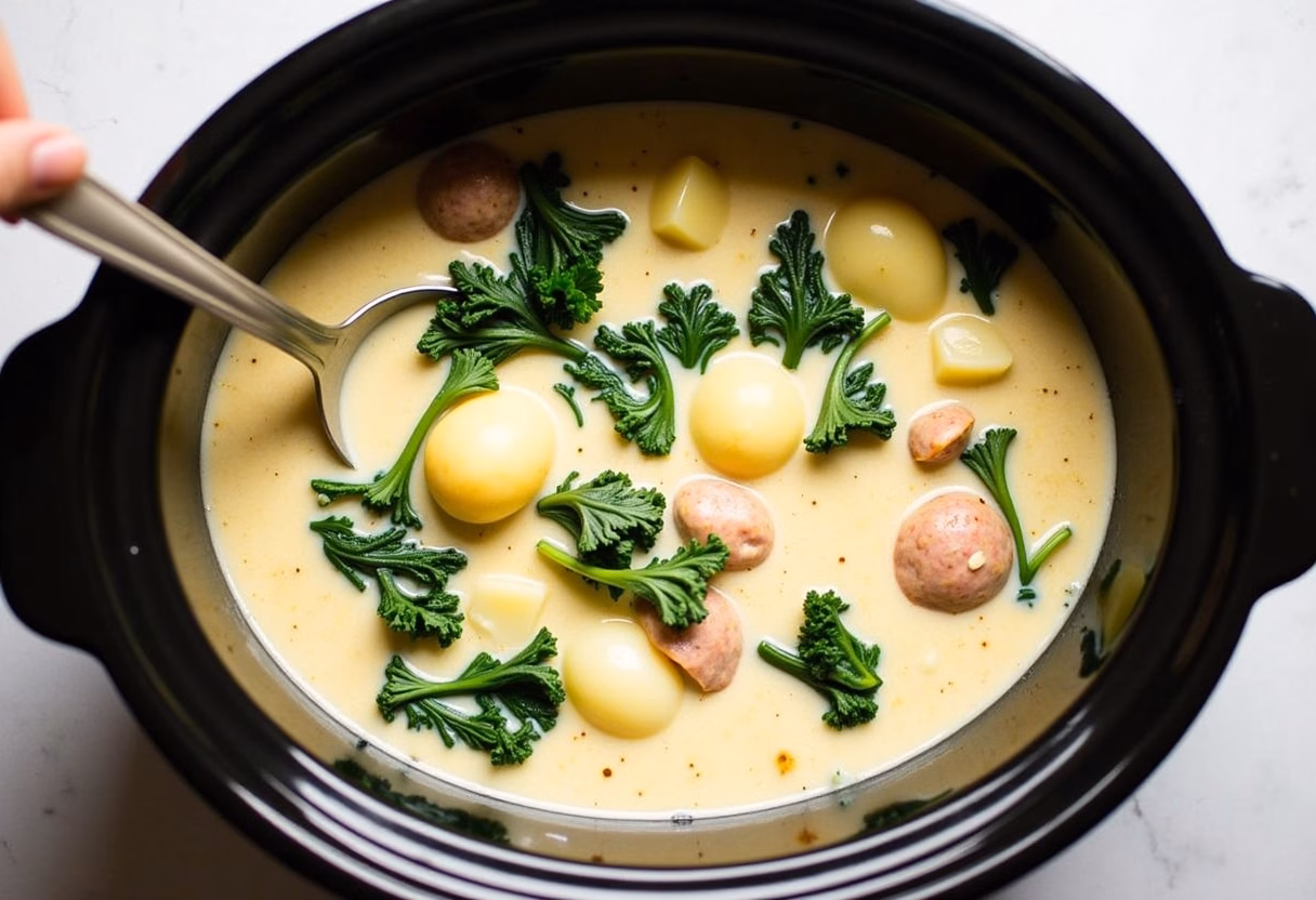 This soup, with its rich history and modern, lighter touch, is more than just a meal. It’s a reminder that we can embrace flavor, gather our loved ones, and still honor our desire for wellness, all with minimal fuss. The slow cooker becomes not just an appliance, but a silent partner in our kitchen, creating something heartwarming while we live our lives. From the savory notes of Italian sausage to the vibrant green of the kale and the satisfying tenderness of the potatoes, each spoonful tells a story of balance, care, and quiet joy. It’s the kind of dish that warms you from the inside out, chases away the chill, and gathers everyone around the table.
