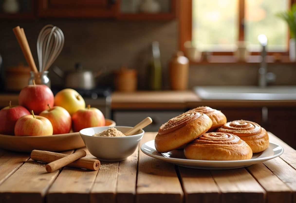 - Bake for 15-20 minutes until cinnamon rolls are golden and puffed, apples tender.