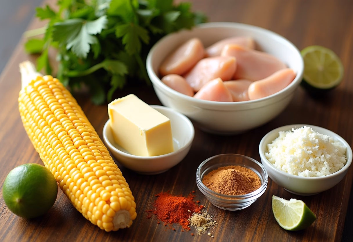 2. Mix the Spices: In a small bowl, combine the chili powder, cumin, smoked paprika, garlic powder, cayenne pepper (if using), salt, and pepper. Sprinkle the spice mixture over the chicken and corn mixture.